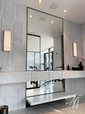 At Adanac Glass, we specialize in custom commercial mirrors. These framing options offer a polished look while protecting the mirror edges for added durability. With a variety of finishes available, they complement everything from sleek modern spaces to classic designs. Available in a range of finishes, they suit both modern and traditional styles.